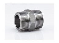 A 3000lb hex nipple is a short pipe fitting with male threads on both ends and a hexagonal section in the middle for tightening with a wrench.